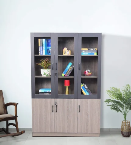 Serenity 3 Door Book Case in Brown Color