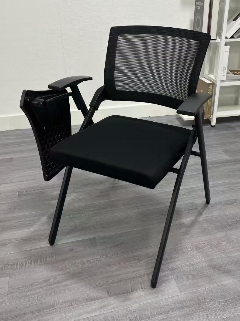 Keywords: black foldable office chair, folding office chair, portable seating, space-saving chair, modern office furniture.