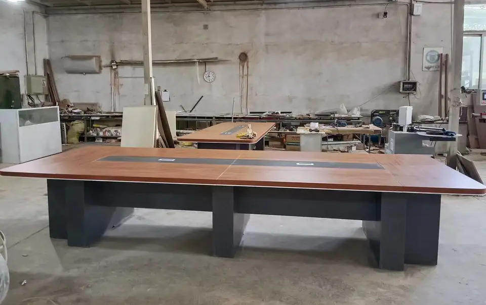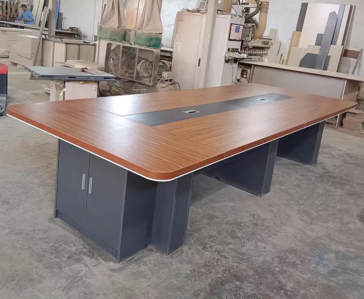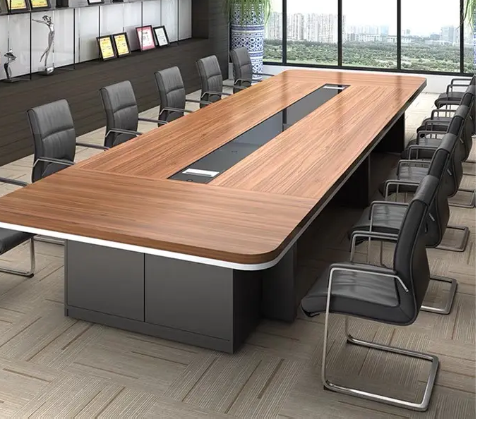 The table features a rich brown finish that adds elegance and warmth to any office setting. Its clean lines and contemporary design create a professional atmosphere suitable for corporate environments. Crafted from high-quality materials, the brown conference office table is built for durability and long-lasting use.