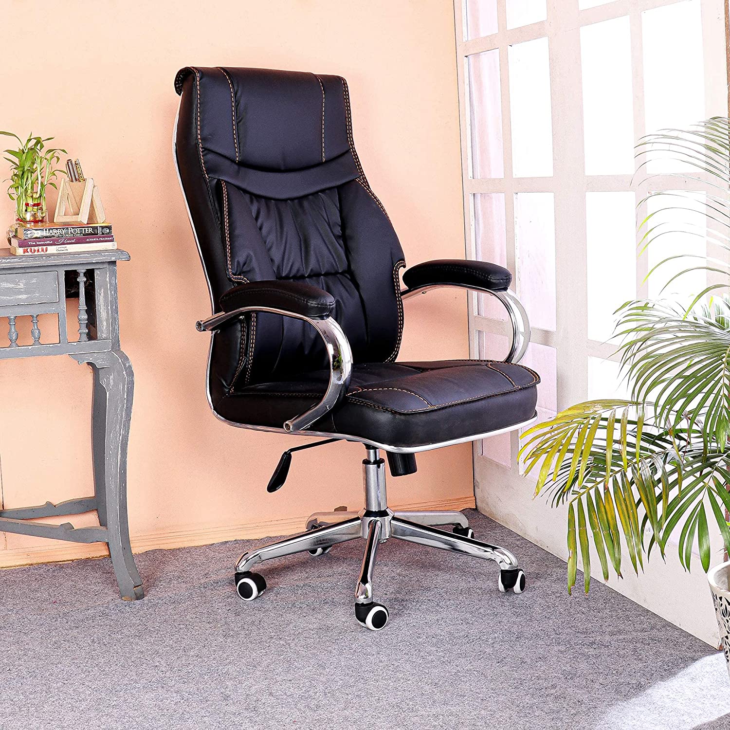 Ergonomic executive high back office chair -Fabric seating with 28kg/m3 density new foam, very strong & quality mesh back(black in color), 100mm chrome gas lift for different heights, high quality aluminum five star base, high quality 60mm plus castors(wheels), synchronized mechanism with back tilt which is lockable at different positions for maximum/extra comfort, adjustable lumbar support, adjustable armrests lockable at different heights & adjustable headrest.Â