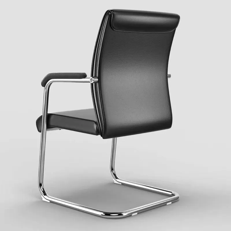 Executive Black Faux Leather Visitor Chair with Contrast Stitching Invite your guests to relax and stay awhile with this Executive Faux Leather Visitor Chair from Work Smart™. Outfitting your office in style, this side chair offers a fresh modern design that will complement your desk and other furnishings while giving the room a finished look. Its contoured upholstered seat is crafted with high-quality, thick layers of padding and built-in lumbar support to make even the longest meetings a breeze. An open sled base finished in a heavy-duty black finish adds a finishing touch to this indispensable visitor chair.