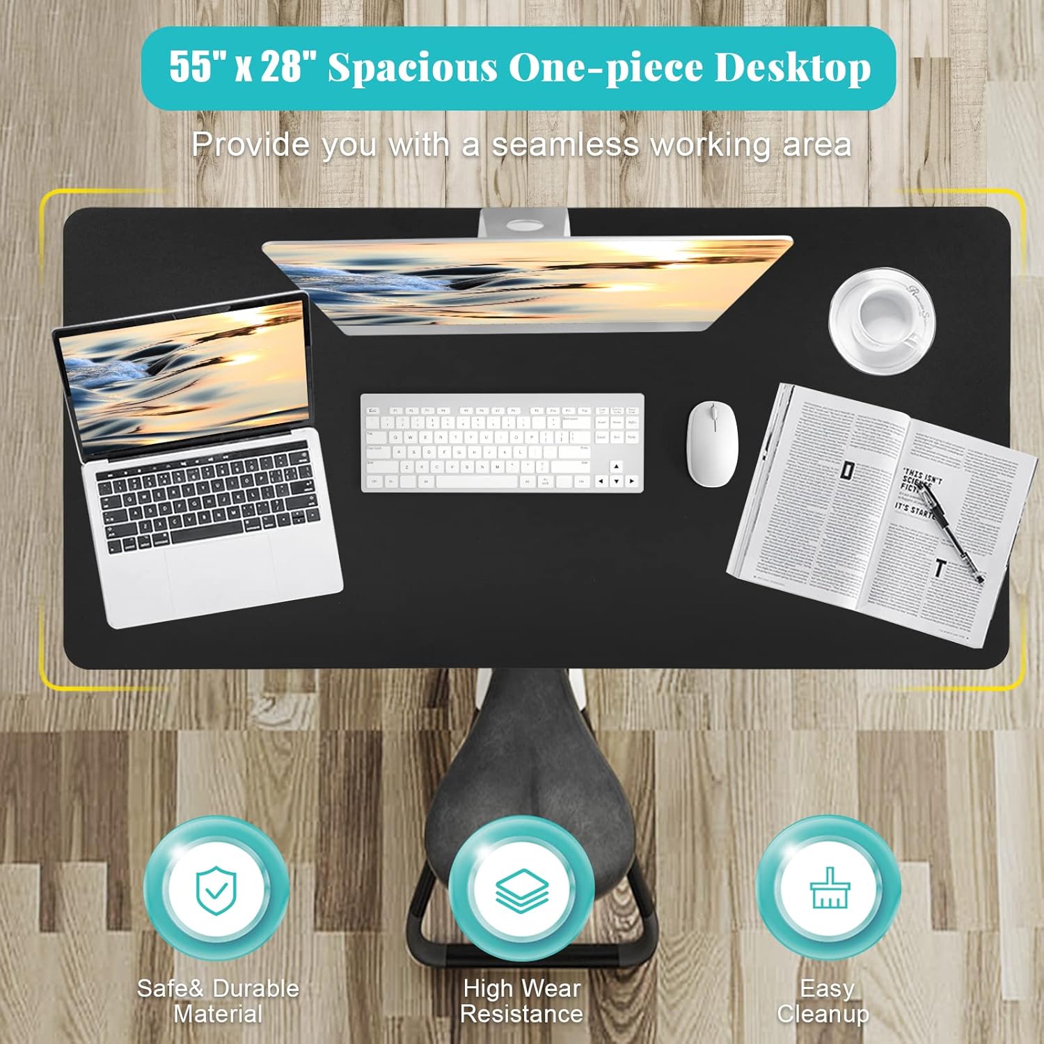 - Spacious and Organized: Large work surface and cable management system keep your workspace tidy and organized.