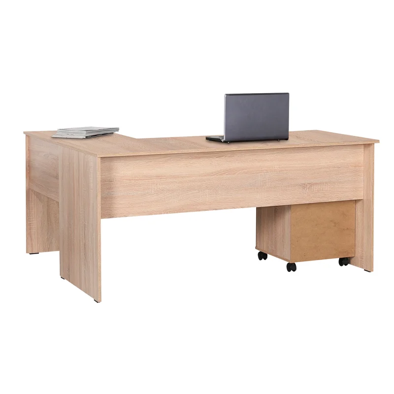 The generous 160cm length of the desk provides an expansive surface area, offering ample room for your computer, documents, and other essential work tools. The unique L-shaped design optimizes space utilization, allowing for a flexible arrangement that adapts to your work preferences, whether for focused individual tasks or collaborative projects.
