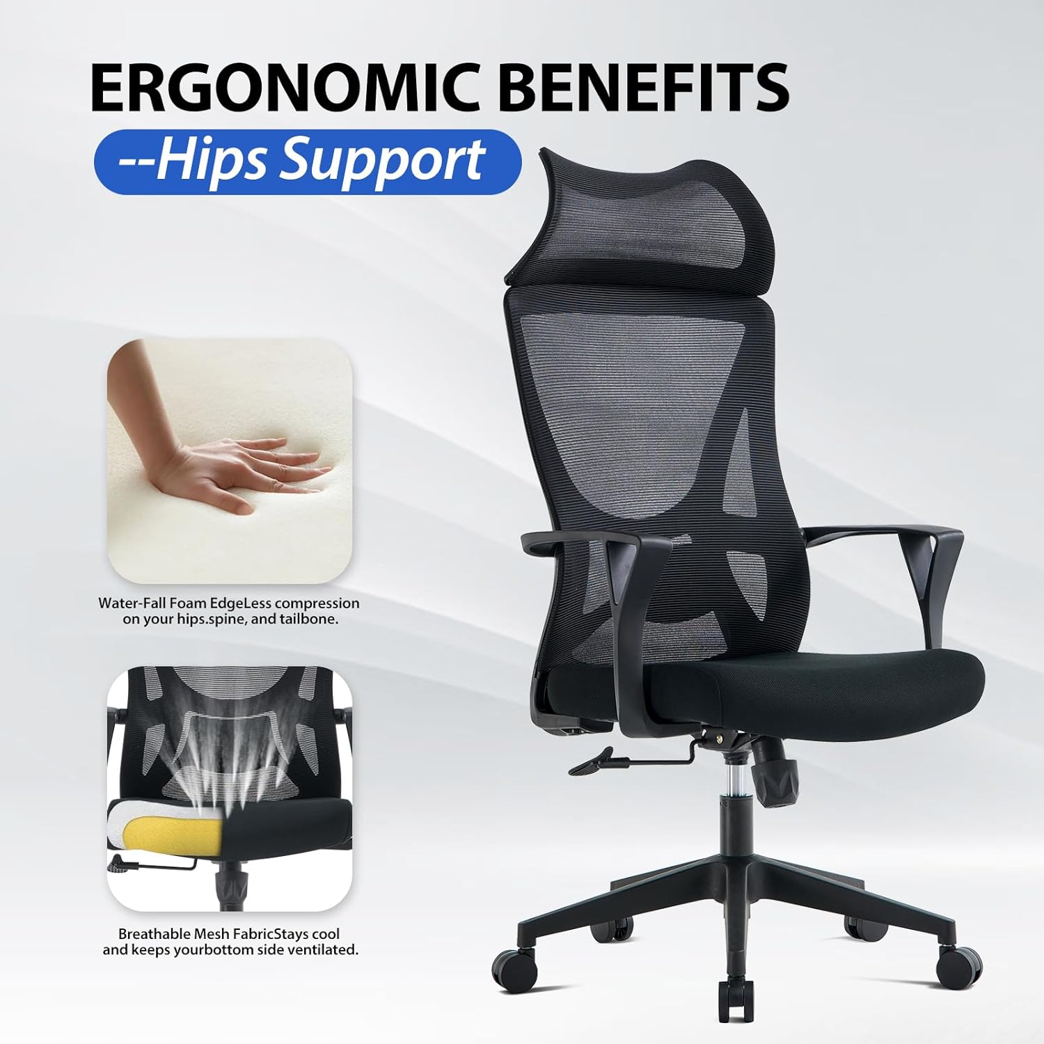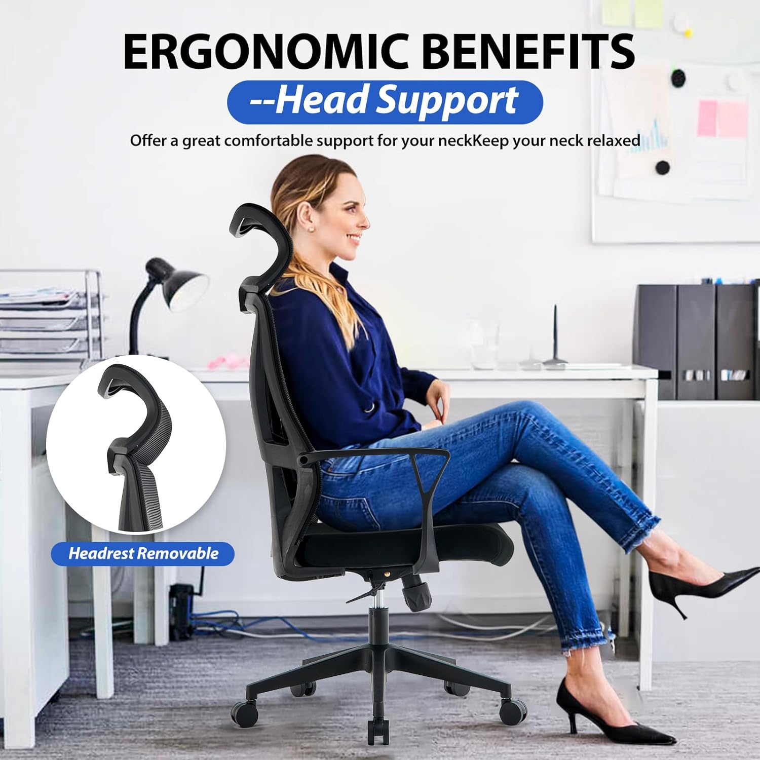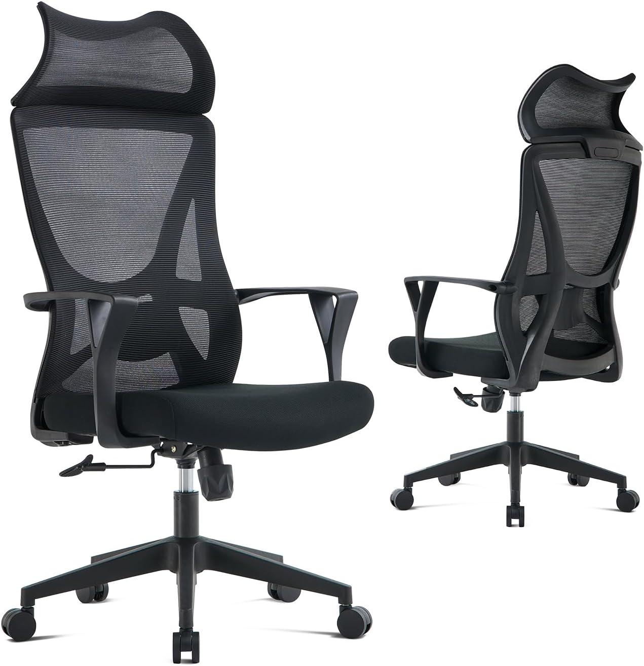 Enjoy ergonomic excellence with an S-streamlined backrest that follows your spine’s natural curve. The one-piece design ensures a snug and supportive fit, effectively reducing spinal pressure and enhancing overall sitting comfort. Now, with the addition of a wider headrest, it offers comprehensive support from head to lower back, catering to your every need.