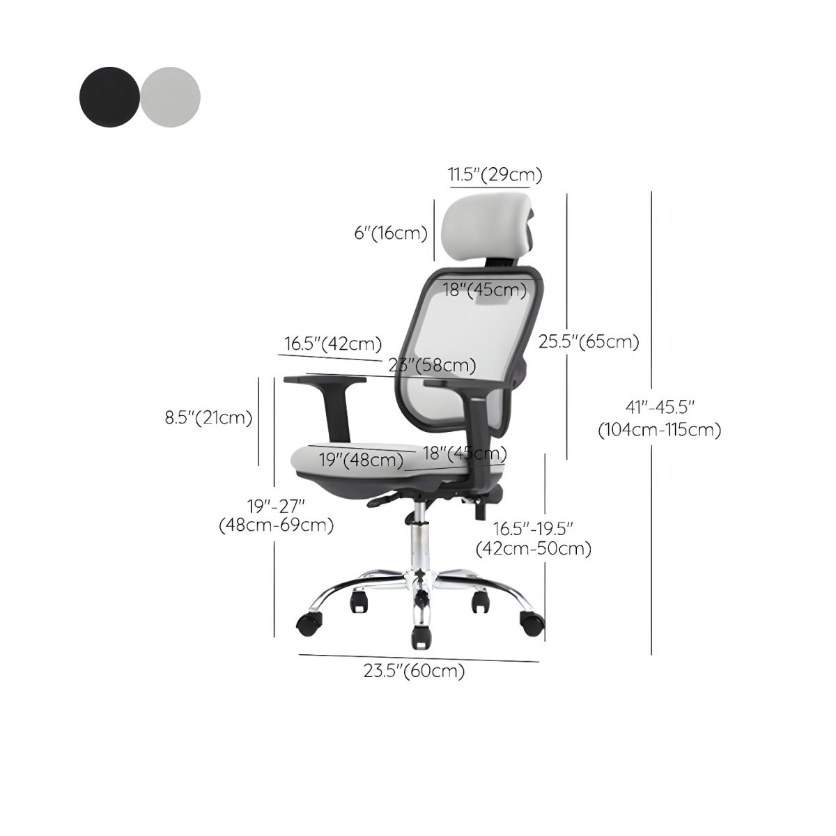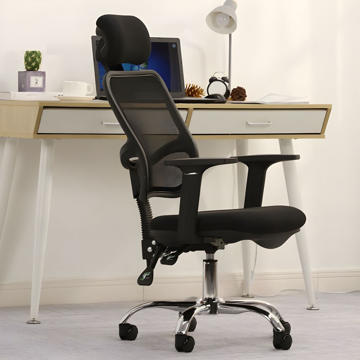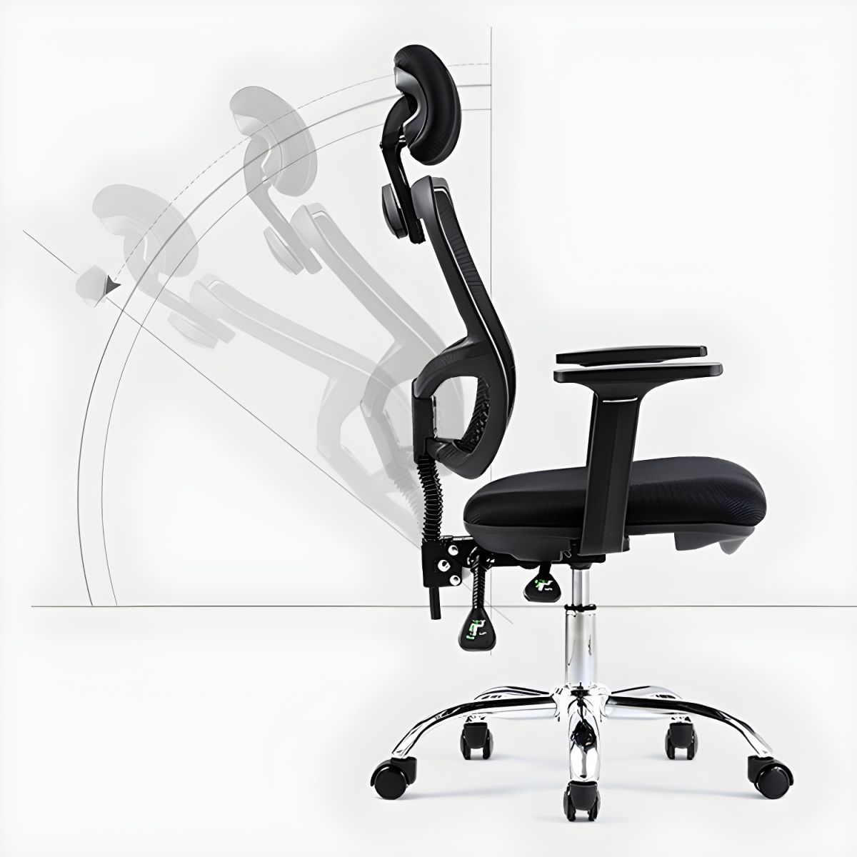 This attractive office chair is loaded with options to maximize your comfort and productivity. The transparent mesh back allows air to circulate, keeping you cool no matter how high the pressure gets. Built-in lumbar support helps prevent back strain and you can adjust the back height a full 2″ up and down. Easily adjust the seat’s back angle, seat height, and tilt angle using three paddle mechanisms. The contoured padded swivel seat is filled with 2″ of foam. Height-adjustable padded arms take pressure off your shoulders and neck. Turn the tilt tension adjustment knob to increase or decrease the amount of force needed to rock or recline. Lock the seat in place with the multi-tilt lock mechanism. The heavy-duty, nylon base with silver accents and dual wheel casters makes it easy to roll. This mesh executive chair is a stylish chair that will keep you cool and comfortable.