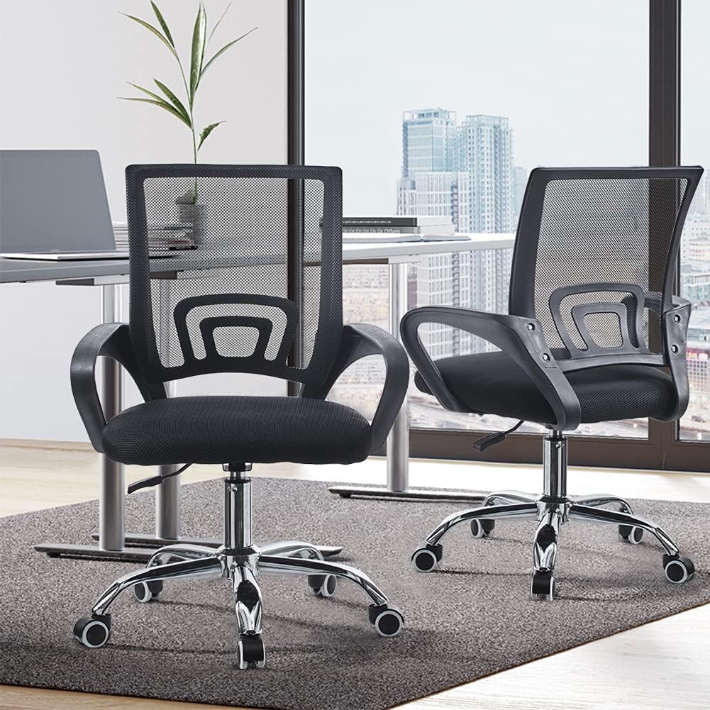 Designed with a contoured mid-backrest, this office chair provides excellent lumbar support, reducing strain on your lower back and promoting a healthy posture. The breathable mesh or cushioned upholstery allows for adequate airflow, ensuring a cool and comfortable seating experience even during extended work hours. The padded seat, crafted with high-density foam, offers superior cushioning to prevent discomfort and fatigue.