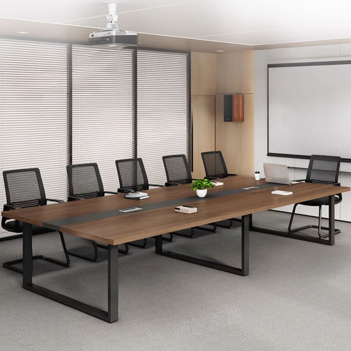 Designed to elevate any boardroom or office space, this table is available in classic finishes such as walnut, oak, espresso, and matte black, ensuring a sophisticated look that complements modern office décor. The sleek edges and minimalist design add a touch of elegance while maintaining a strong corporate presence.