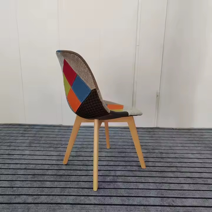 The patchwork fabric combines multiple colors and patterns, offering a unique look that complements eclectic, bohemian, modern, or retro interiors. Moreover, the chair’s compact size makes it highly versatile—ideal for small apartments, lounges, or waiting areas where space is limited.