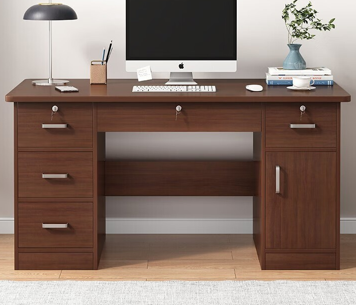 Crafted from high-quality engineered wood with a reinforced frame, the Red Mahogany Office Desk is built to last. Its sturdy construction ensures stability, supporting heavy office equipment and daily use.