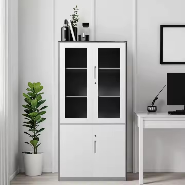 The tempered glass doors add a touch of sophistication while allowing visibility of stored contents. You can use the cabinet to display awards, reference materials, or decor, all while keeping them protected behind durable, shatter-resistant glass. Magnetic door closures or lockable handles (depending on model) add security without compromising on style.