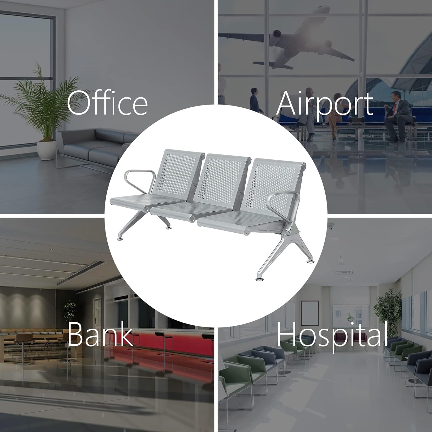 Three seater office waiting bench