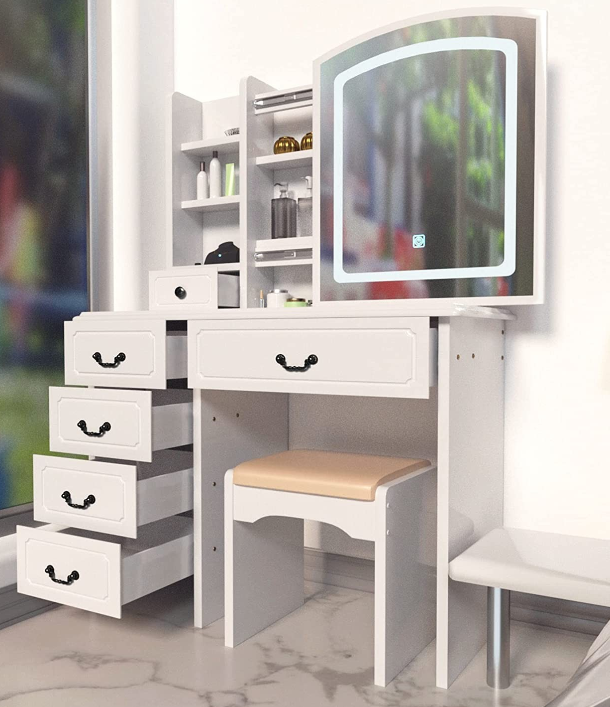 Not only is this dressing table stylish, but it is also practical and easy to maintain. In addition, its lightweight construction allows for easy relocation whenever you want to rearrange your room.