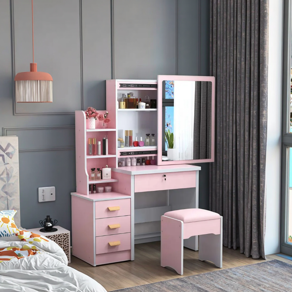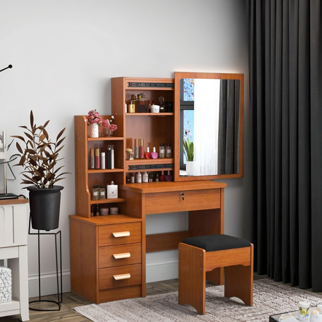 Its compact design saves space while adding both style and function. Place it in a bedroom corner or dressing area to create a dedicated beauty and preparation spot. The versatile design fits both modern and classic interiors.