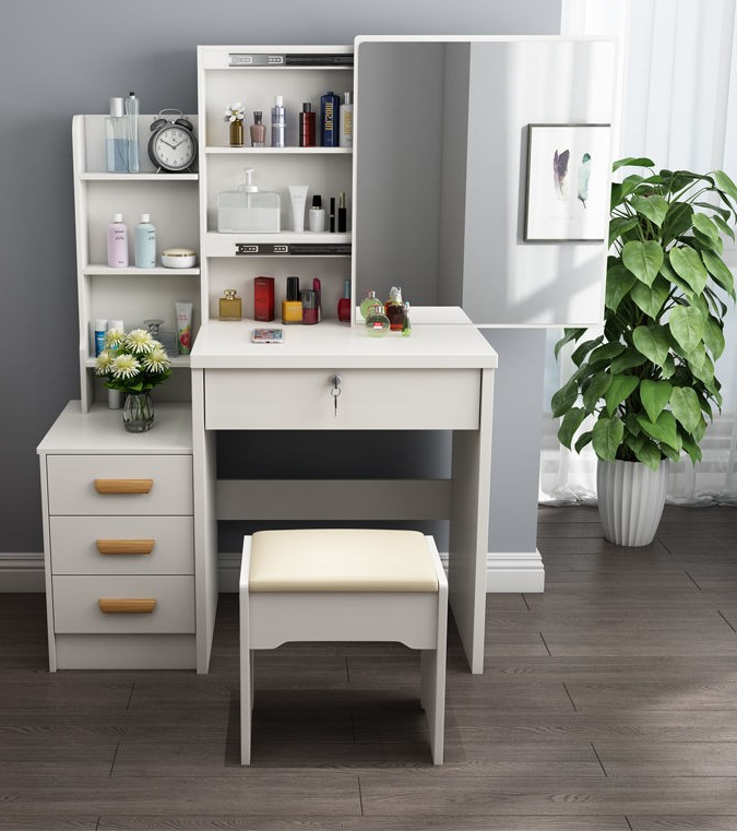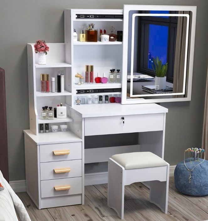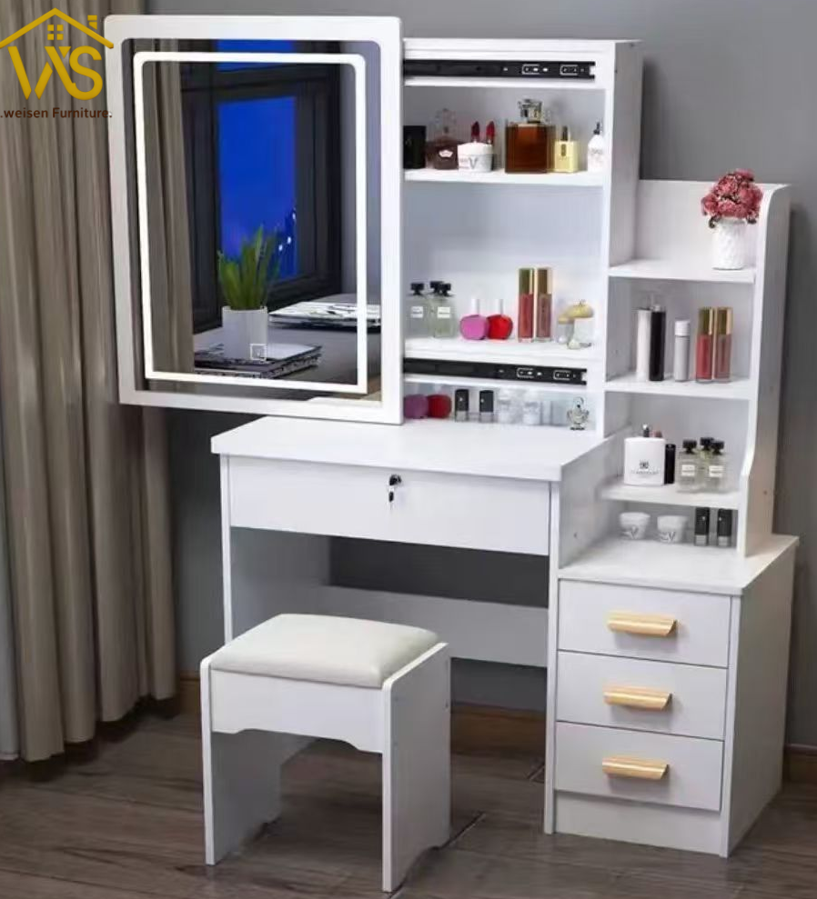 Keywords: white dressing table with mirror, bedroom vanity table, makeup table, modern dressing furniture, elegant bedroom decor.