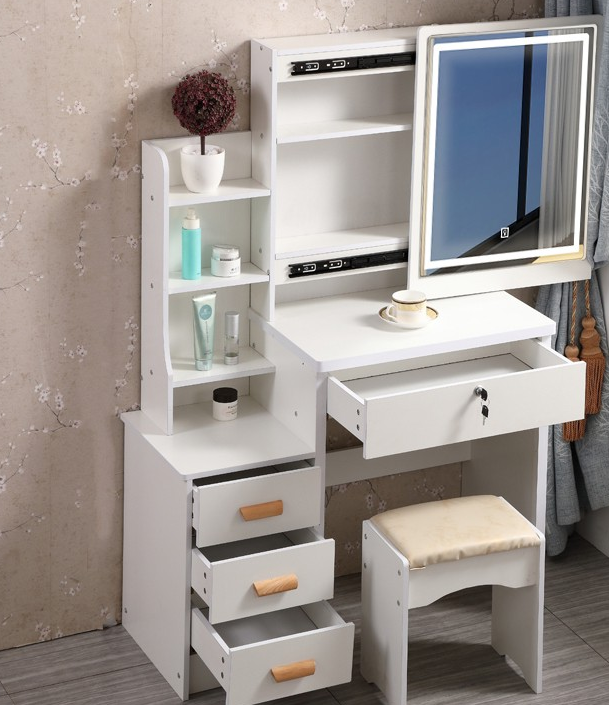 The White Dressing Table includes multiple smooth-gliding drawers, giving you plenty of space to store makeup, jewelry, and personal accessories. Because of this practical layout, your essentials stay neatly organized and easy to find.