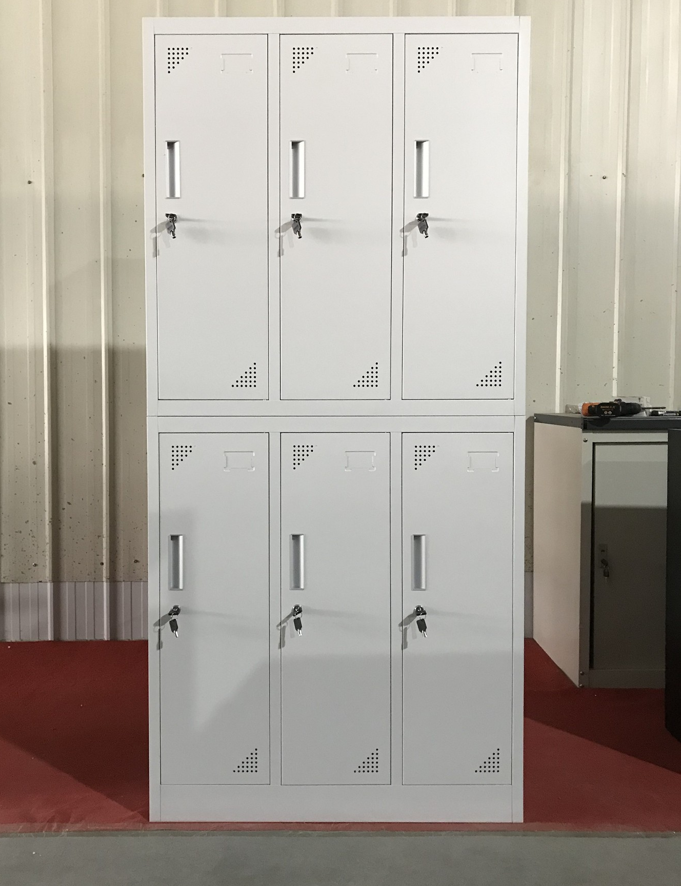 “Durable white metal cabinet for office files”